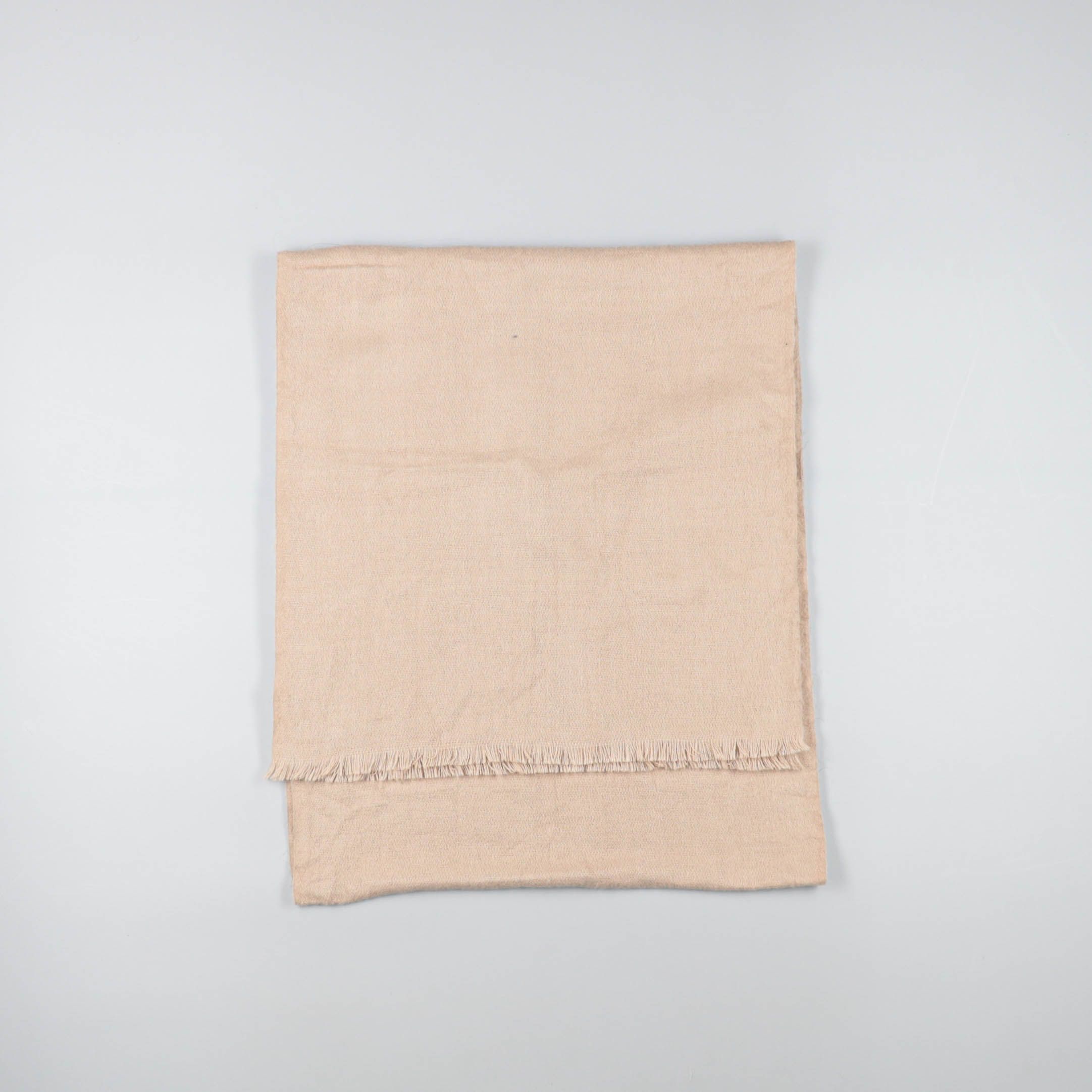 Шарф в бежевом цвете с короткой бахромой по краю, подойдёт для повседневных образов и офисного стиля. Удобно носить весной и осенью, можно завязывать разными способами. Лёгкий и компактно складывается в сумку.