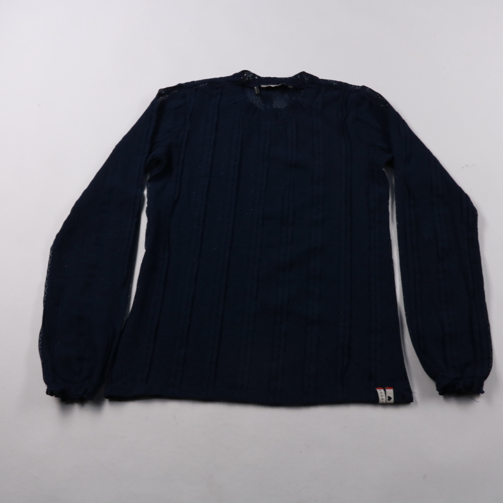 Кофта Looxs тёмно-синего цвета с длинным рукавом и ажурной вязкой/перфорацией. Подойдёт для школы и повседневной носки в прохладную погоду, хорошо смотрится с юбкой или джинсами. Лёгкая и дышащая, удобно носить под жилет или куртку.