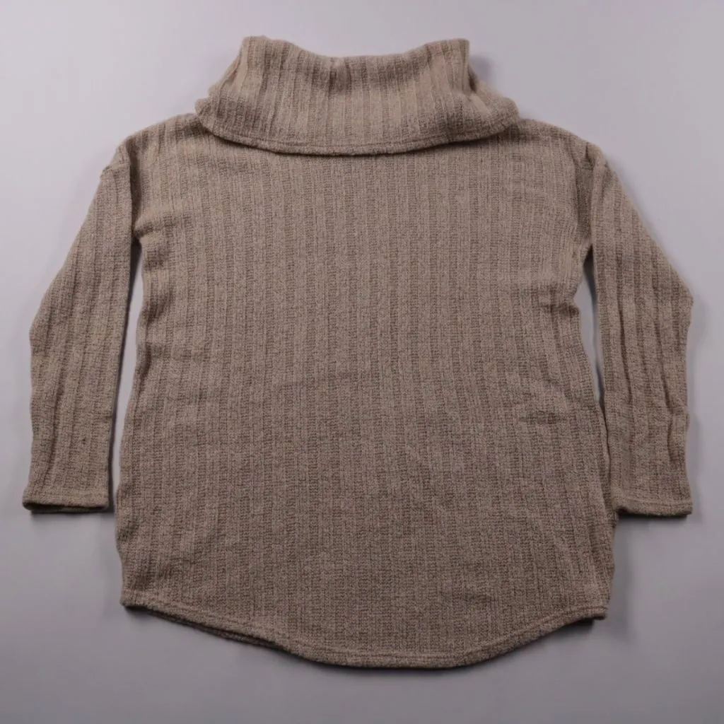 Вязаная водолазка в рубчик с высоким воротником, цвет бежевый. Подойдёт для прохладной погоды в садик или на прогулки, ткань тянется и удобно садится по фигуре. Есть небольшой дефект/зацепка (видно на фото), в остальном вещь носибельная.