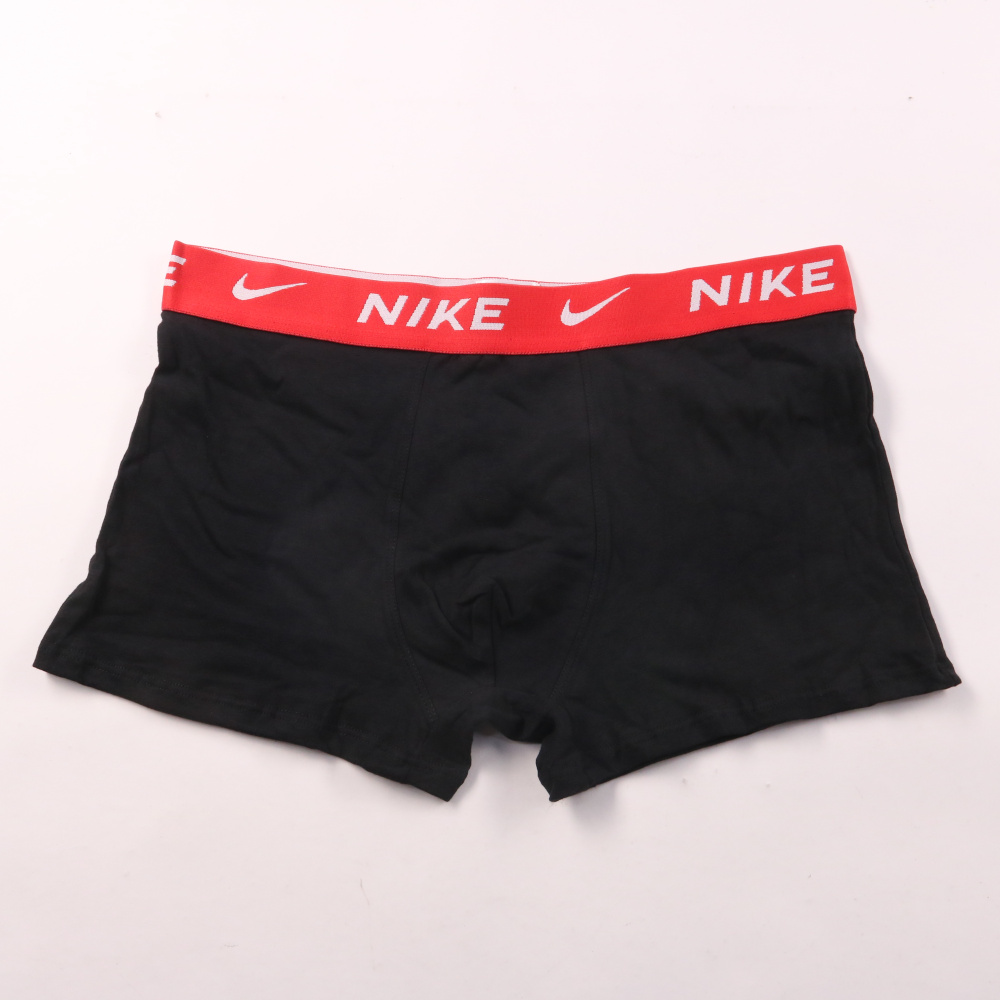 Мужские трусы-боксеры Nike чёрного цвета с красной эластичной резинкой с логотипом. Подойдут на каждый день и для занятий спортом благодаря облегающей посадке. Эластичный пояс хорошо держится и не сдавливает.