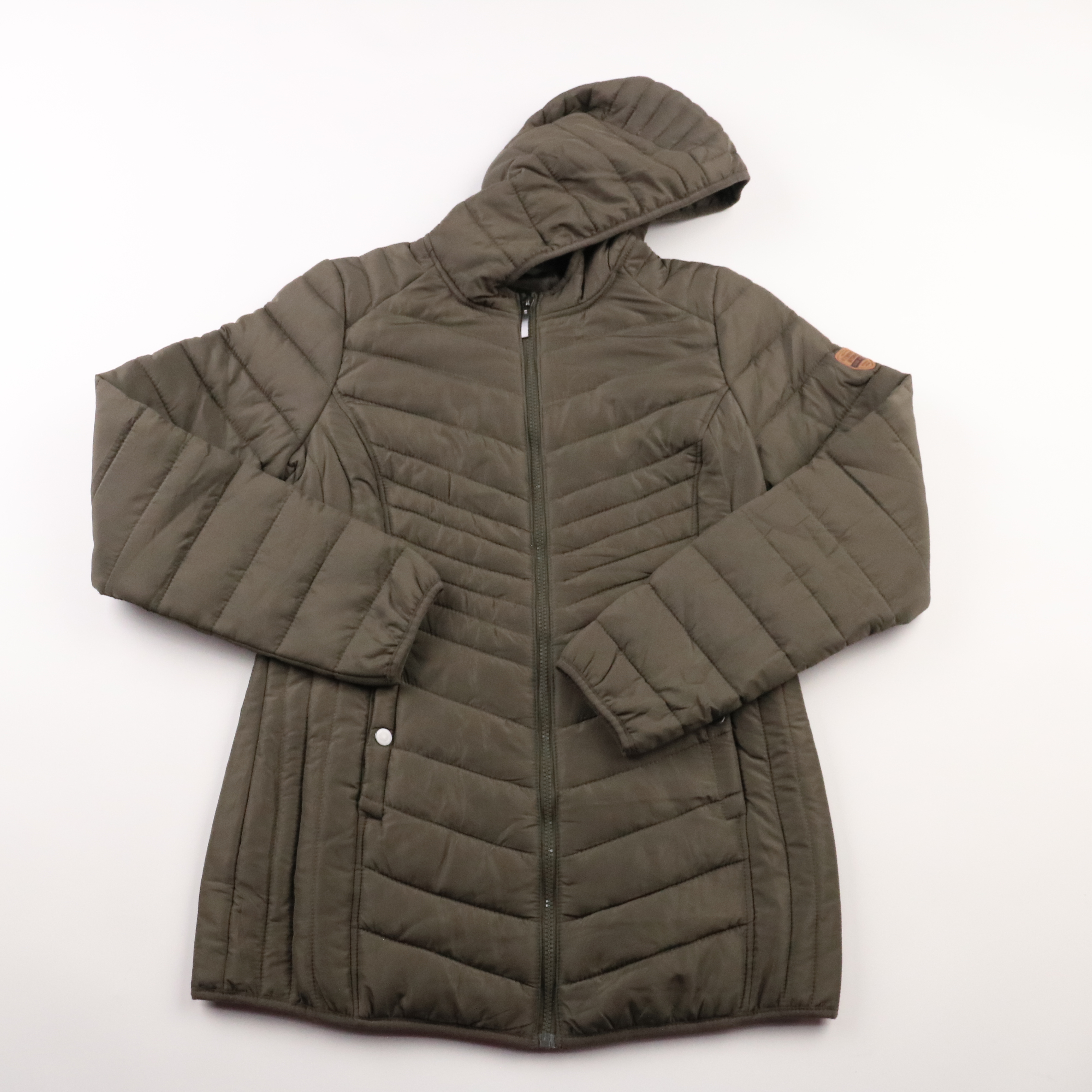 Стёганая женская куртка с капюшоном и застёжкой на молнию. Подойдёт для прохладной весны/осени и повседневных прогулок. Практичный плюс — лёгкий синтетический утеплитель и простой уход.