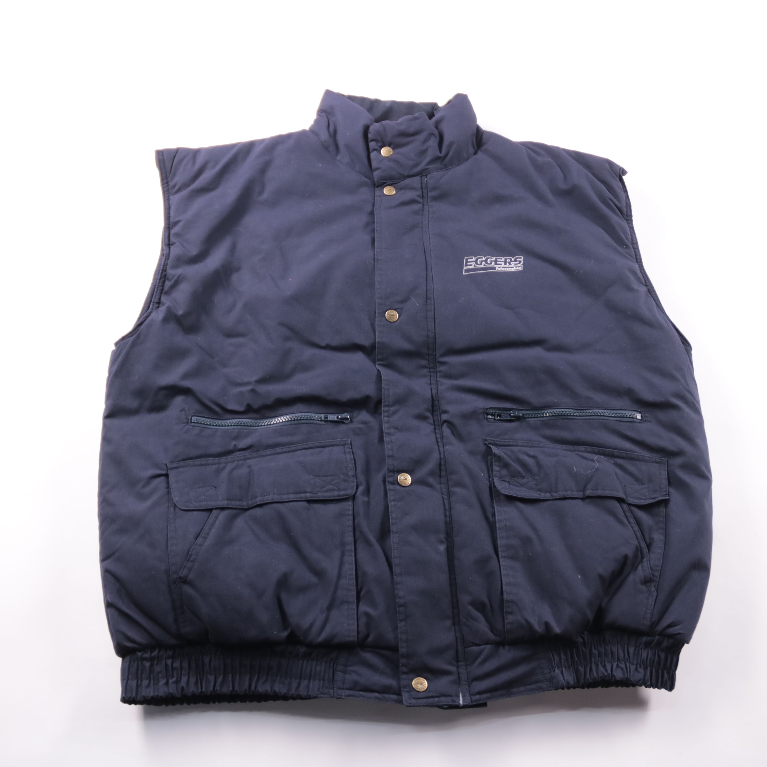 Утеплённый мужской жилет Eggers тёмно-синего цвета с высоким воротником и застёжкой на кнопках. Подойдёт для прохладной погоды в межсезонье и как дополнительный слой поверх худи или свитера. Два вместительных кармана и верхние карманы на молнии удобно ...