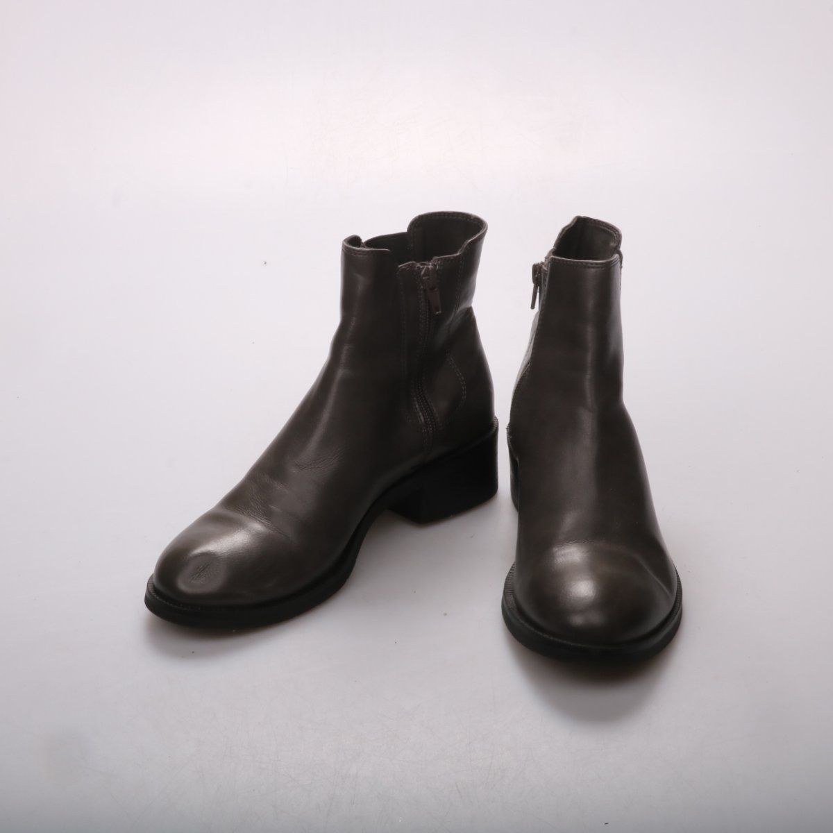 Женские ботильоны из гладкой тёмно-коричневой кожи на устойчивом невысоком каблуке, с молнией сбоку. Подойдут для повседневных образов в межсезонье и на прохладную погоду. Практичная подошва с протектором даёт лучшее сцепление с поверхностью.