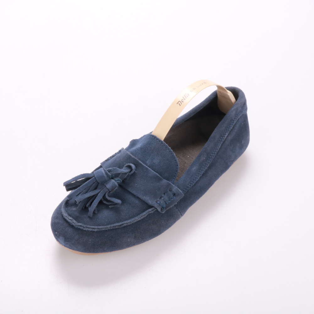 Замшевые лоферы Dalia в тёмно-синем цвете с декоративной кисточкой спереди. Подойдут для повседневных образов и офиса в тёплый демисезон. Плоская подошва с рельефом помогает увереннее держаться на разных покрытиях.