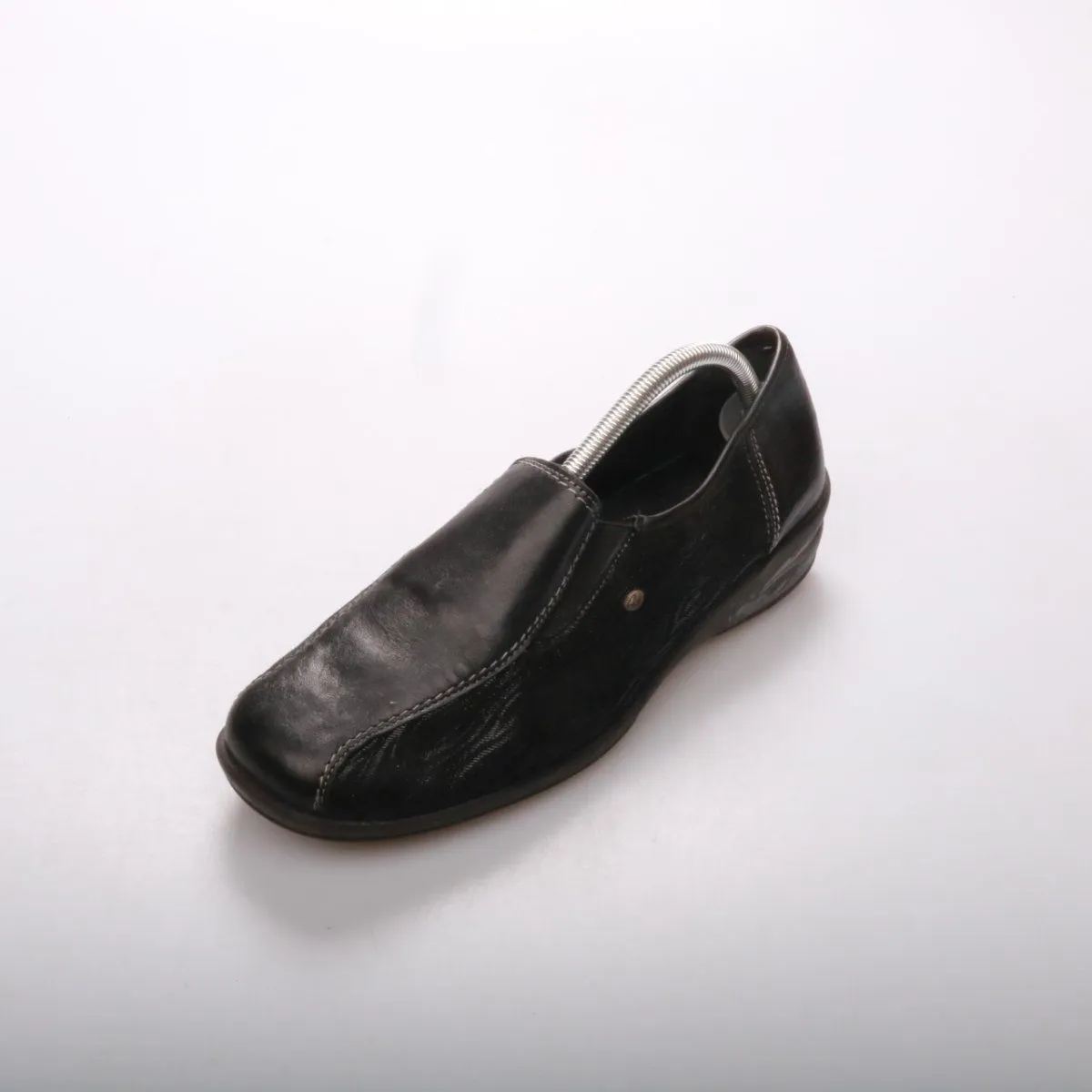 Мужские туфли-слипоны Medicus из чёрной кожи с мягким верхом и лаконичной прострочкой. Подойдут для офиса и повседневной носки в демисезон, когда нужна закрытая обувь без шнуровки. Практичное преимущество — быстро надеваются и имеют удобную устойчивую подошву.