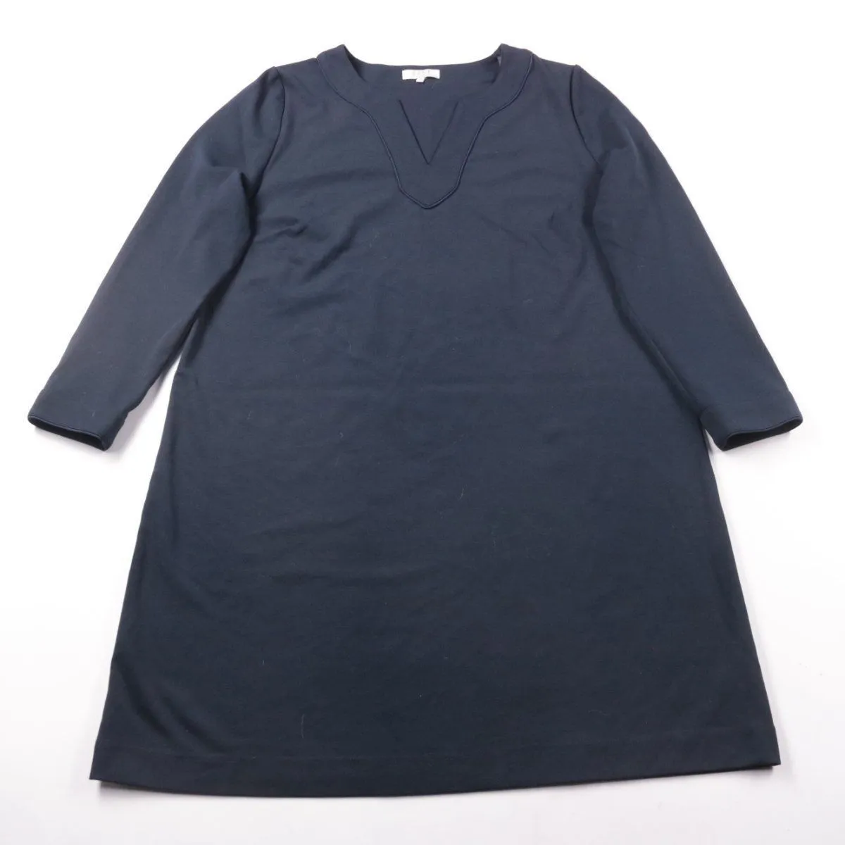 Платье East Lifestyle тёмно-синего цвета с длинным рукавом и V-образным вырезом. Подойдёт для повседневной носки и офиса, хорошо смотрится с ботильонами или кедами. Ткань с эластаном тянется и комфортно садится по фигуре.