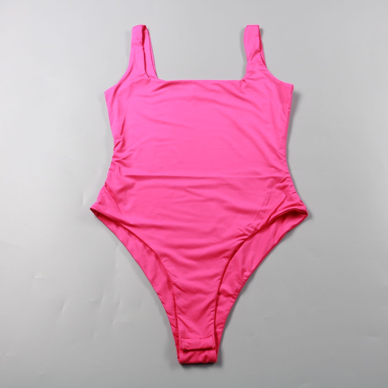 Слитный купальник SHEIN ярко-розового (неонового) цвета на широких бретелях. Подойдёт для пляжа и бассейна, а также как боди под шорты или юбку в летних образах. Эластичный материал хорошо тянется и быстро сохнет.