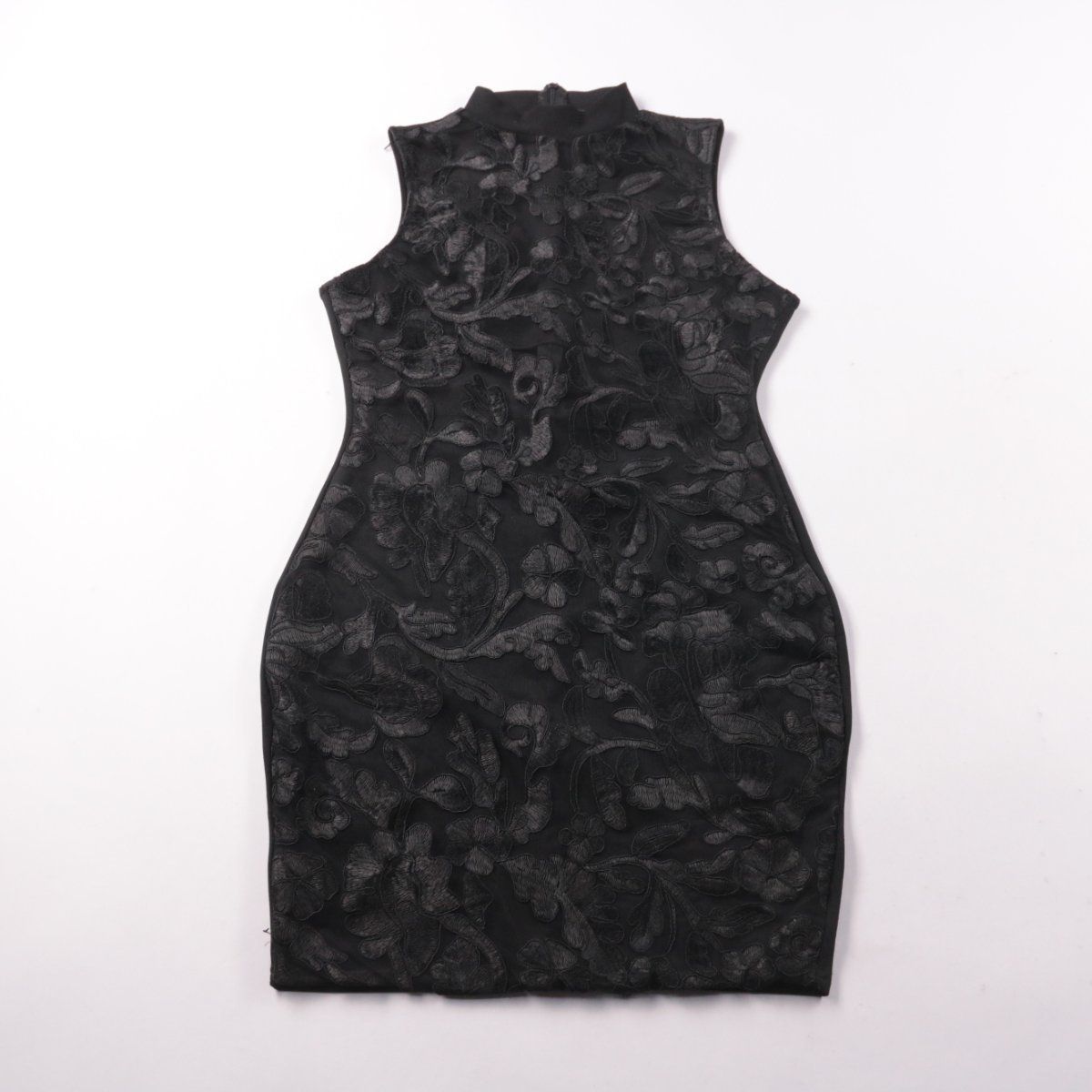 Вечернее платье Edge Street чёрного цвета, без рукавов, с высоким воротником и жаккардовым цветочным узором. Подойдёт для вечеринки, ужина или торжественного мероприятия, хорошо смотрится с каблуками и клатчем. Эластичная ткань комфортно садится по фигуре и не сковывает движения.