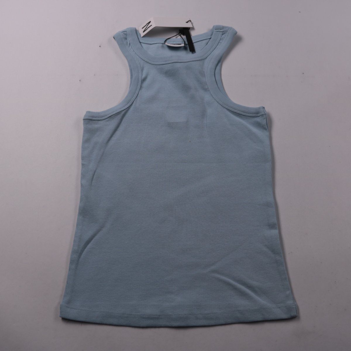 Женская майка Noisy May в голубом цвете из фактурного трикотажа в рубчик. Подойдёт для лета, спорта или как базовый слой под рубашку/жакет. Материал тянется и хорошо садится по фигуре.